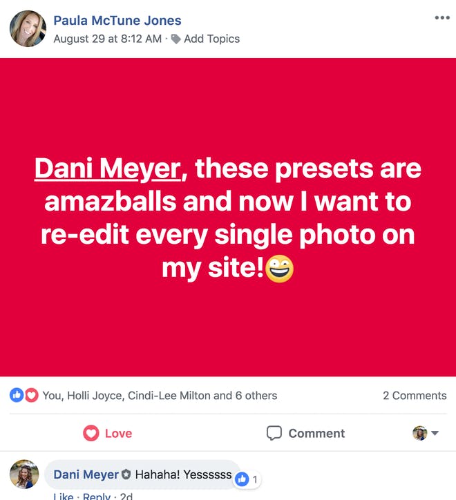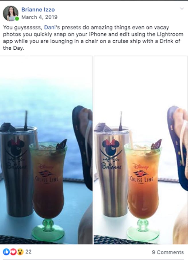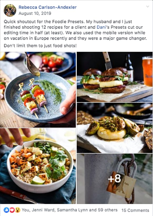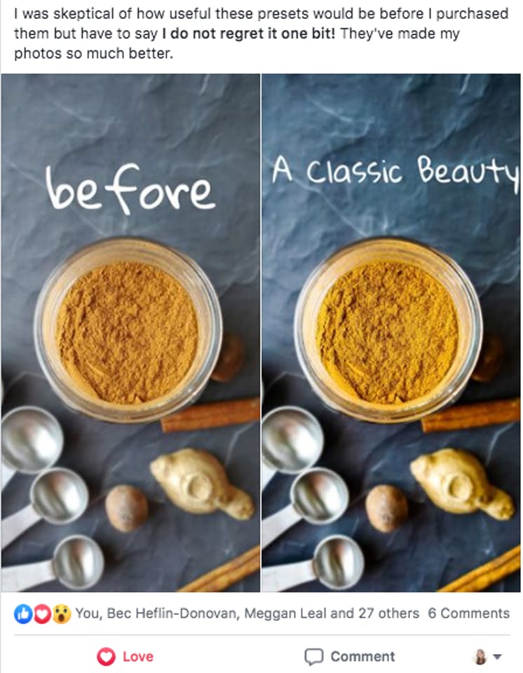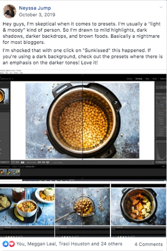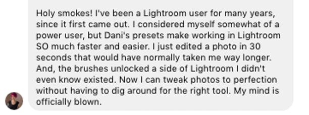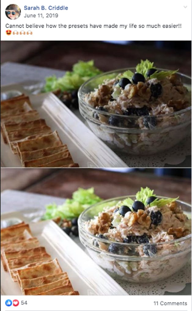 It saves me so much time and helps me stay consistent with my photo editing!"
